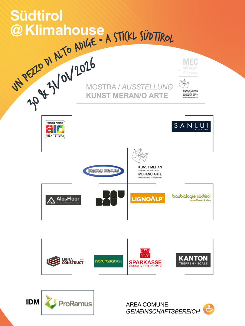All'interno di Südtirol@Klimahouse Merano Arte propone un percorso che, attraverso una selezione di progetti, racconta la qualità e la ricerca dell'architettura contemporanea in Alto Adige. Un viaggio tra paesaggio alpino, cultura del costruire e innovazione, che esplora il dialogo tra tradizione e sperimentazione, sostenibilità e identità territoriale.